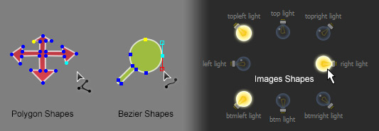 Free-style shapes. 12 types of shapes built-in, including polygon, bezier curve and image shapes: